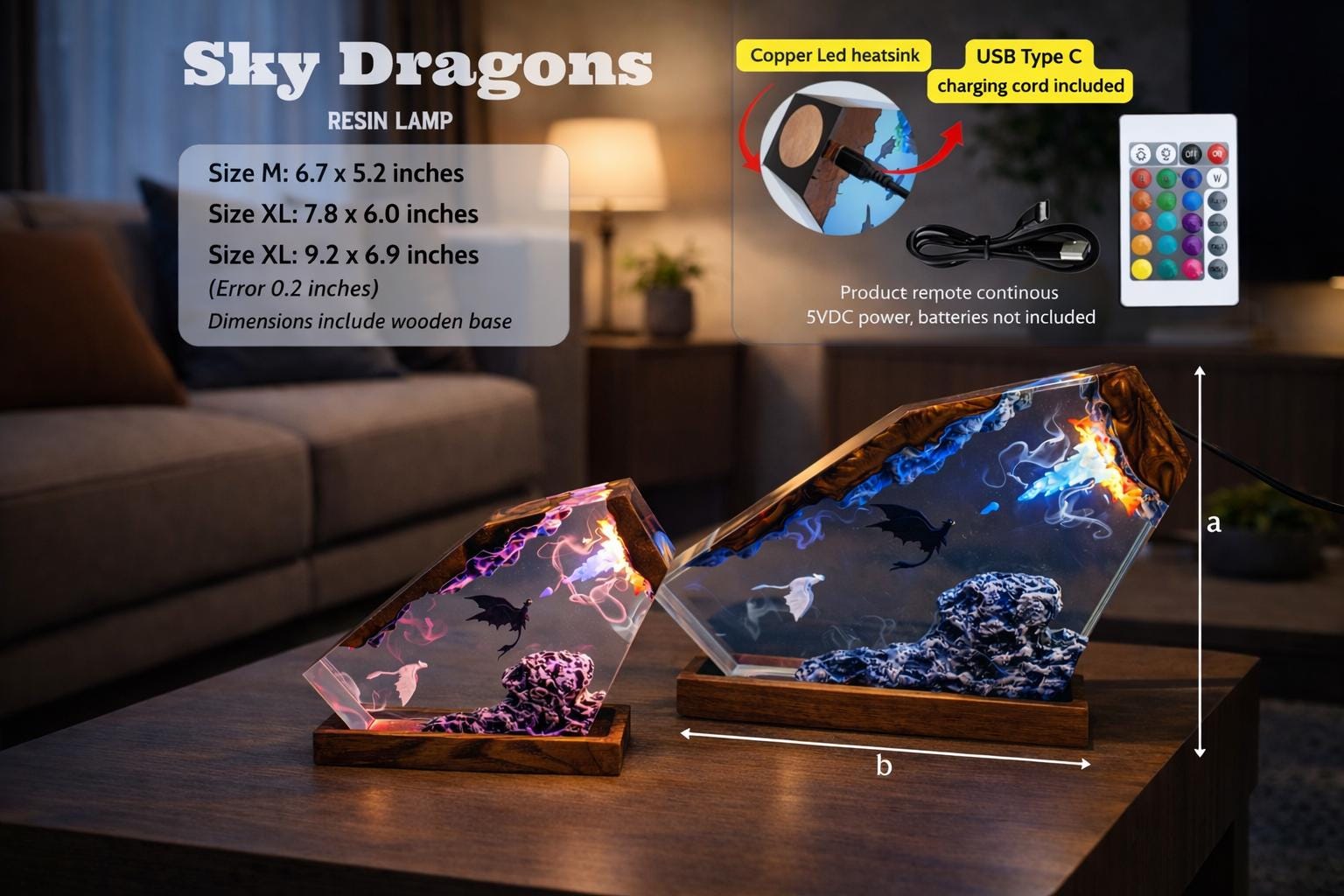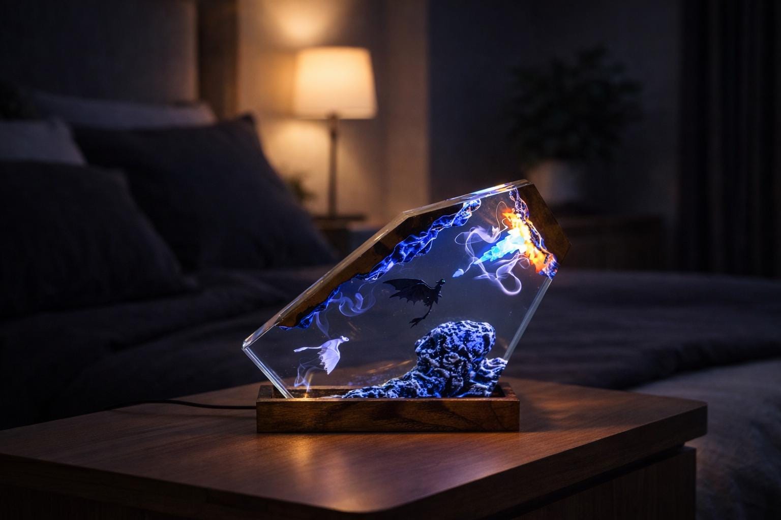 • Handmade epoxy resin dragon lamp – every piece is unique